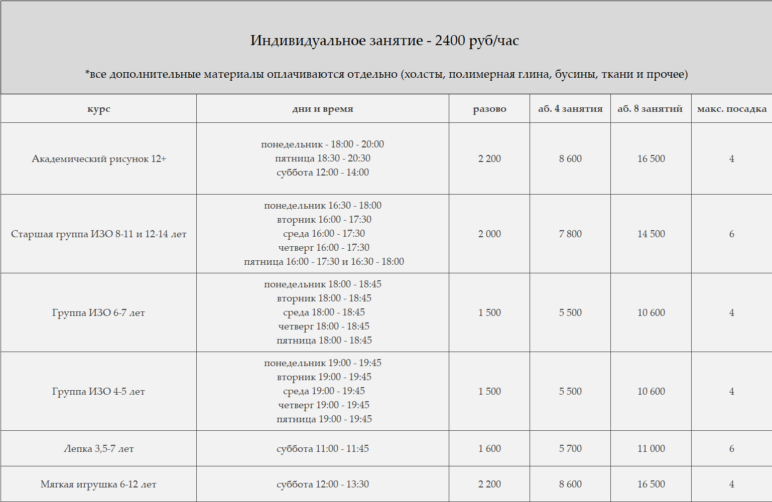 Расписание мастер-классов на ОКТЯБРЬ